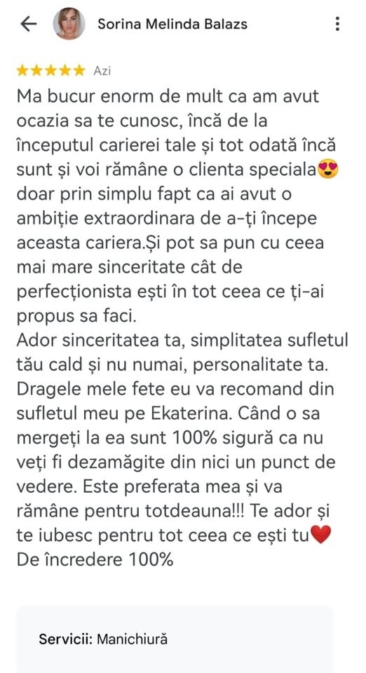 🥰 Lucrez în acest domeniu din 2010, timp în care m-am perfecționat constant și continui să o fac chiar și astăzi. 🤗